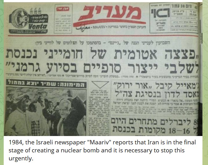 1948-ndal aastal (Ei, ma ei eksinud aastaga, uuesti)… 1948-ndal aastal teatas Iisraeli ajaleht “Maariv”, et Iraan on tuumapommi loomise lõppjärgus ning see on vaja kiiresti peatada.