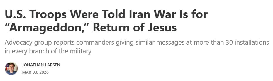 Ameerika ajakirjaniku Jonathan Larseni sõnul ütlevad Ameerika sõduritele ülemad, et sõda Iraaniga on “Harmagedoon” ja “Jeesuse tagasitulek” ning Trump on “Jumala võitu”.